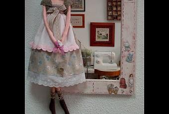 Espejo para recién nacida, Ana, esta vez con Thelma y decorado con las mariquitas con las que jugábamos.