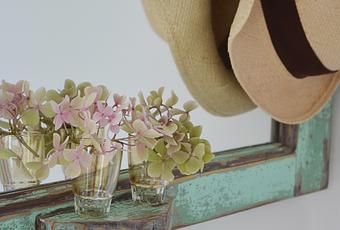 A la vuelta del vidriero amigo no queda más que colocarle sus ganchos para colgar el Espejo-Ventana... y hacer fotos. Con flores, claro.
