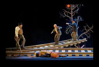 Esperando a Godot es un clásico del teatro del absurdo del siglo XX que regresa a Sevilla de la mano del director Antonio Simón. La representación es un despliegue colosal de recursos que consigue crear un universo propio en el que se sitúa la historia. El desolador paisaje se ilumina ante un elenco de actores que realizan un trabajo impecable: Pepe Viyuela (Estragón), Alberto Jiménez (Vladimir), Juan Díaz (Lucky), Fernando Albizu (Pozzo) y Jesús Lavi. Los personajes son dibujados a la perfección, teniendo una gran importancia la gesticulación, las posiciones y la modulación de las voces. Los actores logran el efecto deseado, sorteando un texto difícil gracias a una excelente expresividad natural y espontánea.