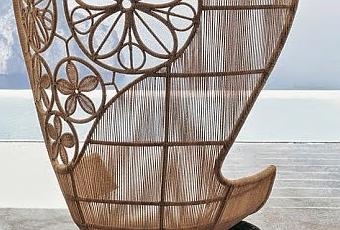 Espectacular la silla con respaldo alto (Crinolina) de Patricia Urquiola. Cuenta con una silueta que se puede producir a través de una trama horizontal o un motivo floral. Tejido a mano en Filipinas por expertos artesanos, hecha con cuerdas de polietileno y fibras naturales, en color dual blanco/negro o negro/bronce. Con su diseño impactante, crinolina hace una declaración en cualquier ambiente al aire libre.