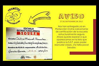 Tenemos la calcomanía, está recibido y aprobado el dictamen, sólo nos queda esperar a que aparezca nuestra escuela en la página oficial:http://192.163.192.80/~escuelapoblanasi/catalogo.php