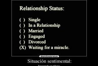 Esperar un milagro… Eso suena a “cosas imposibles” ¿verdad? Y aunque estadísticamente por cada divorciada o separada se supone que tiene que haber un divorciado correspondiente… ¡Pues no, o han emigrado o aquí no hay de eso! Y si las matemáticas no fallan yo no sé que es lo que ha podido pasar! Aunque también es posible que un alto porcentaje de los divorciados “disponibles” se hayan pasado al grupo de “eternos solteros” porque no quieren volver a repetir la experiencia de pareja estable.