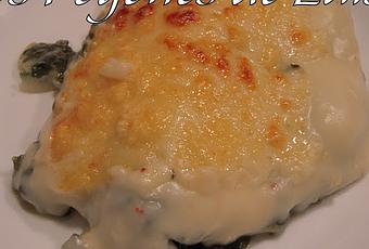 5.- Cubrís con la besamel, que se habrá probado de sazón y cubrís bien toda la espinaca