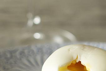3. Para el montaje del plato disponemos unas cuantas espinacas en el fondo del plato y colocamos un huevo pelado sobre éstas.