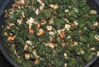 5.- Luego añadimos las espinacas y removemos. Saltemos durante 10 minutos.