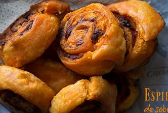 La variedad de espirales de hojaldre radica en el gusto del consumidor. Las que te traigo hoy están espectaculares, pero puedes hacer tus propias combinaciones y conseguir los mismos resultados: jamón dulce con queso, jamón serrano, espinacas con queso de cabra… De todas ellas, mis favoritas son éstas, las espirales de sobrasada con miel y queso de cabra.