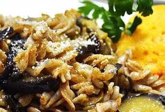 Hoy os propongo una receta de pasta en versión integral, con mi verdura favorita, la berenjena, y ¡sin salsa! Para esta preparación me basé en la de El Toque de Samantha de Pasta integral con calabacines dorados y parmesano. Yo le di una vuelta y en lugar de macarrones he utilizado espirales integrales; y en vez de calabacín, berenjena. He variado las cantidades para adaptarlas a mi gusto. Pero lo que no he podido cambiar ha sido el acompañamiento: un crujiente de parmesano. Le va especialmente bien y además es súper fácil de hacer. De todas maneras, es absolutamente prescindible. El parmesano es un queso bastante graso y si estáis llevando a cabo una dieta de adelgazamiento perfectamente podéis no hacer la galleta, que la pasta sólo con la berenjena y un pelín de queso por encima está deliciosa. Si os agrada esta verdura, seguro que os gustará esta sencilla manera de comer pasta, y además integral, mucho más sana.