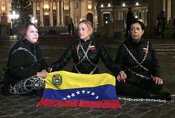 Las tres mujeres hicieron la protesta días antes de que se inicie una nueva mesa de diálogo en Venezuela, que está programada para el próximo martes. “Tenemos fe de que el Vaticano nos va a ayudar a cumplir con lo que desean todos los venezolanos (…) lo primero que tiene que pasar es la libertad de todos los presos políticos”, agregó.