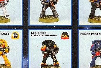 Junto con las imágenes de esta entrada,encontré esta otra.Es de la caja de 2ª y mostraba que,aunque lo marines que salían de muestra en el caja eran Ángeles Sangrientos,había otros muchos esquemas de colores y otros muchos capítulos para ponerles.Las figuras de orkoz no eran tan genéricas(Eran todas del Klan Goff),pero las de marines si.Esta lamina es curiosa por varios motivos.Por un lado esta ver que algunos capítulos fueron nombrados o mejor dicho traducidos de una forma diferente(Puños Escarlata en vez de Puños Carmesíes).Por otro ver que es la primera o de las primeras apariciones oficiales de una figura de marine pintada con los colores de los Puños Imperiales(Creo que antes solo salio un Dread,pero no estoy seguro).Y por ultimo una figura pintada de la Legión de los Condenados.Aun quedaban no pocos de años hasta que les sacaran figuras propias.En cuanto a lo demás,son en muchos casos o esquemas sacados de la epoca del RT o el primer esquema que tuvieron.