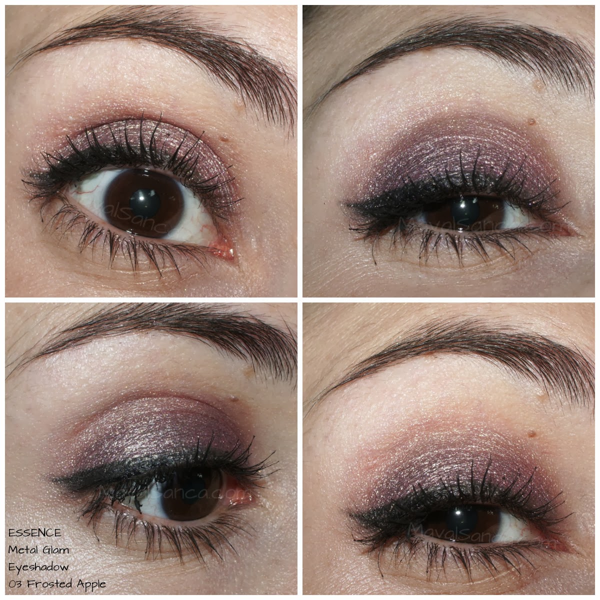 ESSENCE Metal Glam 03 Frosted Apple is a pink color eye shadow.In addition to its metallic finish has beautiful golden sparkles.It's very silky and easily applied.Isn't dusty and cand be blended easily.