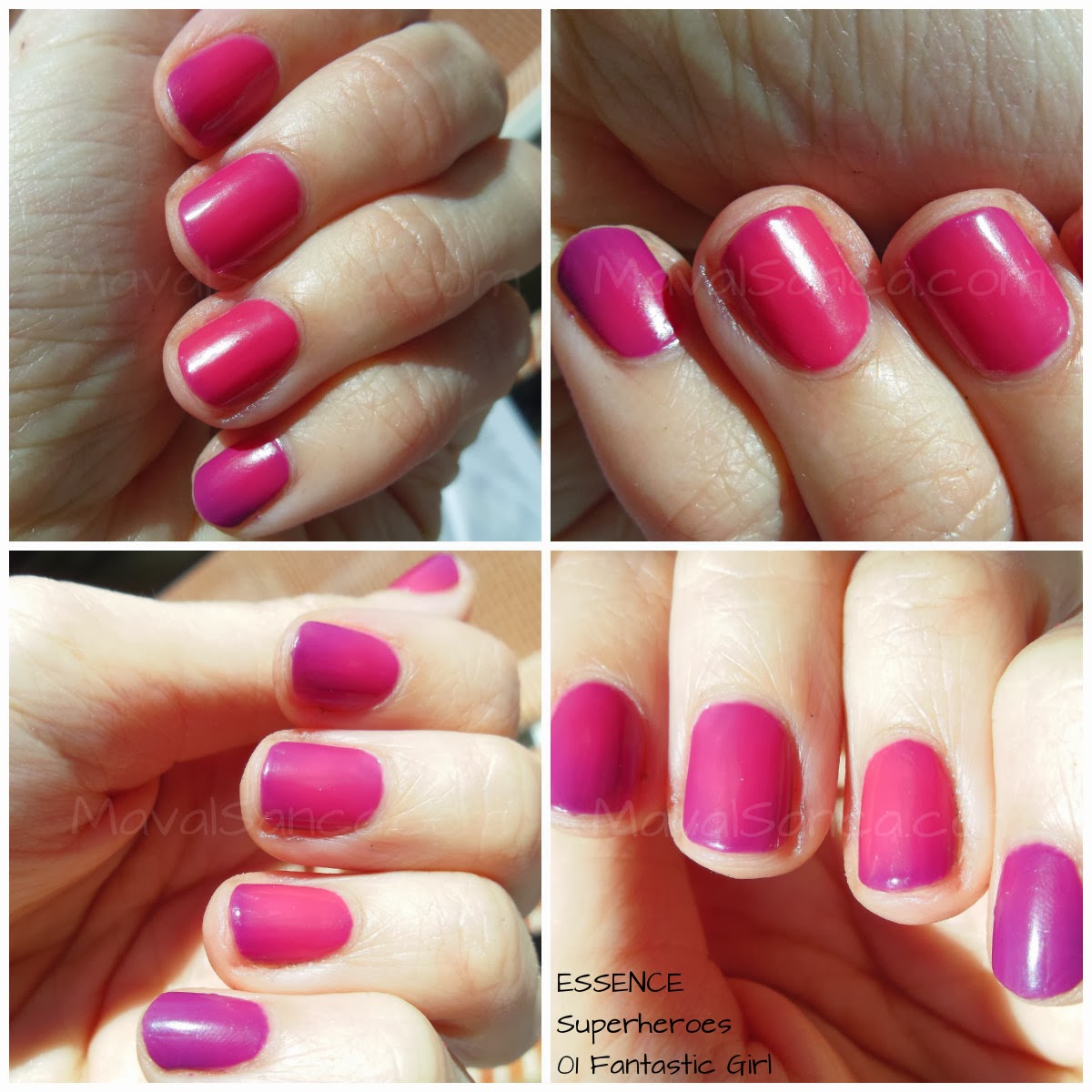 Y en esta última foto podéis ver cómo el color del esmalte de uñas va cambiando a medida que aumenta la temperatura.Queda un degradado bastante bonito.Pero es una cosa bella y efímera a la vez jajajajaAnd in this last picture you can see how the nail polish color changes as the temperature increases.It's quite a nice gradient.But it is a beautiful and ephemeral thing at a time lolY aquí os dejo el vídeo que he hecho sobre la Edición Limitada Superheroes de ESSENCE.Si le echáis un vistazo podréis ver el resto de productos que tengo a ver si os interesa alguno.And here I leave the video I made about Superheroes Limited Edition of ESSENCE.In it you can see all the other products that I have of this Limited Edition to see if you are interested in any.