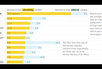 The New York Times analizó el costo de los anuncios móviles en 50 de los sitios de noticias más populares tomando en cuenta 3 factores: