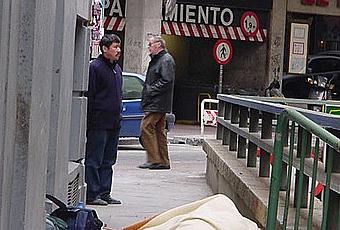 Persona sin hogar durmiendo a la intemperie en la zona de Callao de Madrid.