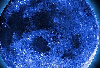 Basándose el origen del término en el calendario gregoriano, su uso se difundió probablemente en la Europa medieval. La traducción castellana no es del todo completa, ya que la expresión proviene del inglés blue («azul»), el cual a su vez viene de una deformación del inglés antiguo belewe, que en realidad significa «traidor», ya que una luna adicional en la primavera implicaba extender el ayuno de la cuaresma1 Entre tres y siete veces en cada siglo hay dos lunas azules en un mismo año. Debido a que el mes de febrero es el único cuya duración es inferior al ciclo lunar, la primera siempre se produce en enero y la segunda, en orden decreciente de probabilidad, en marzo, abril o mayo.2 Se observaron dos lunas azules el 2 y 31 de diciembre de 2009, coincidiendo que el 31 de diciembre de 2009 hubo un eclipse parcial de luna, cuyo plenilunio fue en diciembre.