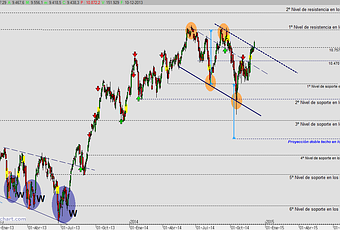 Si nos guiamos estrictamente por el preciograma, las apuestas a la baja se pagarían caras, porque la mayoría de indicios apunta a que el mercado va a seguir subiendo. Incluso si buscamos en los indicadores más utilizados, todos ellos no muestran ningún tipo de divergencia con el impulso alcista actual. ¿Rally de fin de año y trampa alcista? Pues resulta complicarlo saberlo, pero piensen que el dinero del ahorrador clásico está moviéndose a la renta variable desde los poco rentables depósitos de imposición fija. Este potente flujo de dinero puede dar alas a la renta variable en el próximo año, pero siempre con un ojo en el retrovisor vigilando a los verdaderos directores del mercado. El resto de niveles de soporte y resistencia para el Ibex quedan para vuestra consulta en el gráfico anterior.