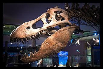 Escena cámbrica por John Sibbick.La respuesta tiene dos factores. Por un lado, hay MUCHOS ejemplares de T. rex, si los comparamos contra ejemplares conocidos de otros grandes terópodos, como Spinosaurus aegyptiacus o Giganotosaurus carolinii. El que existan tantos ejemplares permite hacer MUCHOS más estudios y aprender más de esta especie. Por otro lado, este saurio funge como una especie carismática.