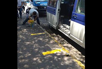 • Colocan marcas para que usuarios respeten el espacio de 1.5 metros mientras abordan unidades.