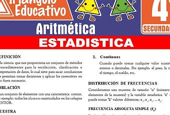 Aquí obtendrás GRATUITAMENTE el siguiente material sobre Estadística preparado especialmente para los estudiantes de Cuarto de Secundaria. Este contenido se desarrolla en el curso de ARITMÉTICA y te lo compartiremos GRATIS en formato PDF.