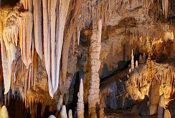 Estalactitas y estalagmitas se forman cuando el agua gotea o fluye desde fracturas en el techo de una cueva. Son los tipos más comunes de espeleotemas en cuevas.