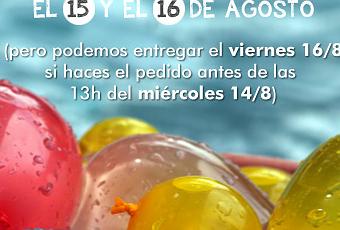 Cómo el jueves es festivo en toda España, este viernes no abrimos (¡y así descansamos todos un poquito!), pero podemos hacer entregas el viernes si haces el pedido antes de las 13h de este miércoles. ¡Si tienes una fiesta este fin de semana, sería aconsejable que hicieses el pedido ya!