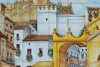 Junto al Arco del Postigo, en la calle Almirantazgo, en la fachada de lo que era antes el Restaurante La pimienta y actualmente tiene el sugerente nombre de Atakito, podemos ver este azulejo donde se refleja el bullicio callejero del lugar en una estampa del siglo XVIII.