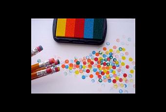 Lo único que tienes que hacer es coger unos lapiceros con goma y tinta de colores. Si quieres estampar papel cualquier tinta te puede valer, si quieres estampar tela deberás utilizar una pintura adecuada para que sea resistente a los lavados.