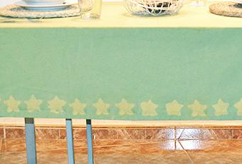 -Ponemos el mantel sobre una superficie plana. Esta es mi mesa de la salita de los tuneos.