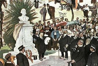 A las diez y media de la mañana del domingo 11 de noviembre de 1900 se inauguraba el monumento a D. Claudio Moyano Samaniego, obra de Agustín Querol, que había sido sufragada por los maestros.