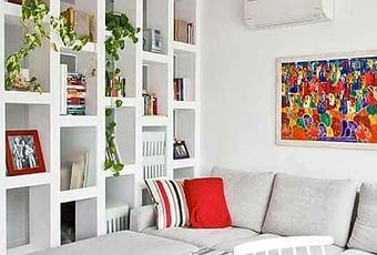 ㊗️ Las estanterías son un buen recurso cuando necesites dividir un espacio.En este ejemplo nos sirve para dar privacidad a la sala al abrir la puerta de entrada y crear un pasillo.