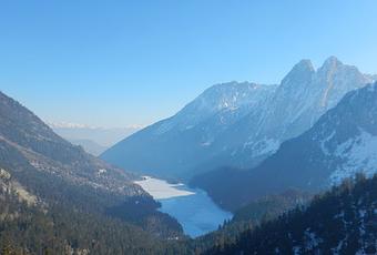 Continuamos descendiendo hacia el refugio Ernest Mallafré. Antes de llegar al refugio abandonamos el camino por un sendero, a la izquierda, que nos sitúa en la orilla del lago que estaba totalmente congelado. El último tramo de la ruta pasa junto la presa de l'estany.
