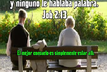 El libro de Job nos enseña que las personas que sufren no siempre necesitan oír palabras. A veces, solo precisan que alguien se siente en silencio a su lado, las escuchen cuando necesitan hablar y las abracen cuando sus angustias se convierten en sollozos.