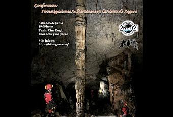 Nuestro presidente dará una conferencia el día 5 de Junio (Día Internacional del Medio Ambiente) titulada "Investigaciones Subterráneas en la Sierra de Segura", donde dará a conocer lo que es la espeleología en sí, las maravillas subterráneas de la Sierra de Segura en general, y las actividades que se están llevando a cabo en este territorio, ya que para nuestro colectivo, la Sierra de Segura es uno de los paraísos naturales más importantes de España y siempre lo hemos divulgado allá donde vamos.