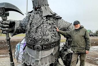 Vladimir Kanonik es un artista de Bielorrusia que, el solo, ha construido una escultura metálica de un Enano minero, a partir de piezas antiguas sacadas de una gasolinera de carretera. Y ahí le vemos posando con su obra! Una pasada de obra, muy detallada y con un marcado sabor de personaje de fantasía.Mis felicitaciones a Vladimir Kanonik por semejante maravilla artística!