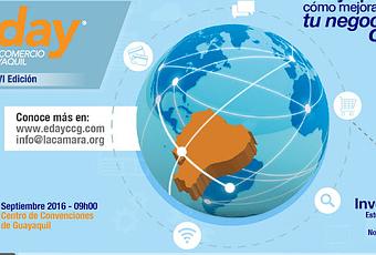 El eDay Cámara de Comercio de Guayaquil VI Edición es una jornada donde podrás conocer las últimas tendencias y casos de éxitos sobre el uso e impacto en internet en el comercio electrónico, tendrás la posibilidad de interactuar con más de 500 personas, anticipar escenarios y generar nuevas ideas para tu empresa, pyme o emprendimiento.