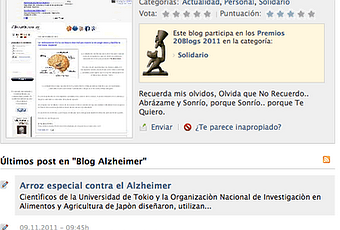 Alzheimer Universal se presenta a la Edición 2011 de Premios 20Blogs en la categoría: