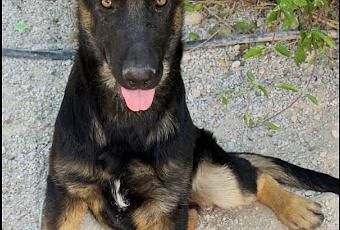 Este peluchón es mestizo de Pastor Alemán y tiene unos 4 meses de edad aproximadamente, es un cachorrito que será de tamaño mediano-grande.