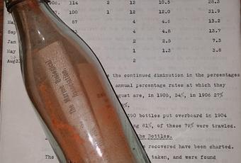 Según The Guardian, la botella fue arrojada en el sur del Mar del Norte por el biólogo marino George Parker Bidder el 30 de noviembre de 1906. Fue una de las más de 1.000 botellas que Bidder lanzó en lotes como parte de su investigación sobre los patrones de las corrientes del océano.Dentro de la botella había una tarjeta postal con un mensaje escrito en Inglés, alemán y holandés. Se pedía a la persona que lo encontrara que escribiera la fecha y donde se encontró la botella, y que lo devolviera a Bidder, a la dirección de la Asociación de Biología Marina de Plymouth, Inglaterra.Winkler, que no tenía idea de la antigüedad de la botella cuando la descubrió, siguió las instrucciones y la envíó a la dirección postal de la institución de investigación de renombre internacional."Hubo un gran revuelo cuando abrimos el sobre, como se puede imaginar," Guy Baker, director de comunicaciones de la asociación, dijo al Telegraph.
