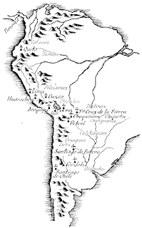 De las propiedades de la tierra del PerúPor Perú entendemos no toda aquella gran parte del mundo que intitulan la América, pues en ésta se comprende el Brasil y el reino de Chile y el de Granada, y nada de esto es Perú, sino solamente aquella parte que cae a la banda del sur y comienza del reino de Quito, que está debajo de la línea, y corre en largo hasta el reino de Chile, que sale de los trópicos, que serán seiscientas leguas en largo, y en el ancho no más de hasta lo que toman los Andes, que serán cincuenta leguas comúnmente, aunque en algunas partes, como hacia Chachapoyas, hay más.