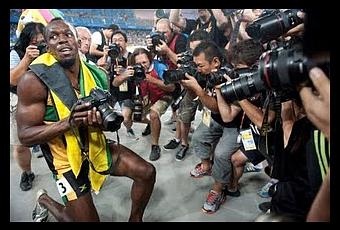 Bolt, cámara en mano, retratado por los fotógrafos - EFE.