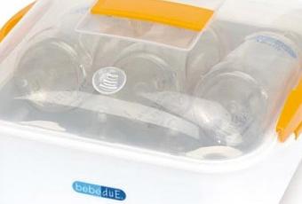 El esterilizador de biberones Bebédue puede esterilizar cualquier accesorio o complemento que utilicemos para el bebé, tetinas, chupetes, vasos, etc. El vapor de agua tiene un coeficiente de transferencia calorífica mucho más elevado que el aire, es un calor húmedo con una gran capacidad de penetración, destruye esporas y bacterias en un plazo de tiempo muy corto, no deja residuos tóxicos y además es un método económico.