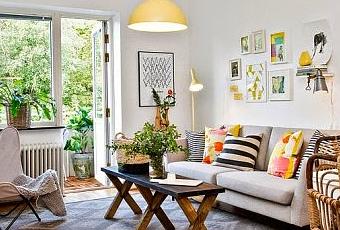Este apartamento de estilo escandinavo nos demuestra que el color y la alegría no esta reñida con el diseño. Amarillos, naranjas, corales, rosas.......inundan los espacios de buen gusto y optimismo.