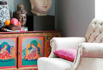 Los mueblesUna de las ventajas del estilo étnico es lo bien que se complementa con la mayoría de estilos, por eso resulta muy fácil la elección de mobiliario: desde muebles exóticos, de inspiración africana, árabe, colonial u oriental, hasta otros de líneas rectas y minimalistas o de aire más rústico. El salón y los dormitorios suelen ser las estancias en las que más toques étnicos se encuentran gracias a las camas, cabeceros, baúles, mesas de centro, pufs, sillones, escritorios y hasta armarios y vitrinas, entre otras piezas. Estas pueden conseguirse en viajes, pero también en tiendas y mercadillos.