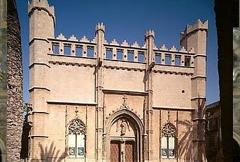 Lonja de Palma de MallorcaVista de la fachada de la Lonja (Llotja) de Palma de Mallorca, uno de los ejemplos más representativos del gótico flamígero en la Corona de Aragón, desarrollado en estos territorios durante el siglo XV.Estilo flamígero, en arquitectura, la fase final del estilo gótico en Francia y otros países europeos, que se practicó desde el último tercio del siglo XIV hasta principios del siglo XVI. Sus principales características son las curvas sinuosas, las tracerías onduladas de los vanos, la decoración profusa de arcos con motivos vegetales y la utilización del arco conopial y de bóvedas con nervios secundarios y terciarios llamados ligaduras, terceletes y combados.El estilo aparece fundamentalmente en detalles arquitectónicos, como los rosetones de las fachadas, más que en la estructura de los edificios.