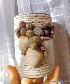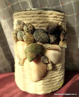 En mi caso he hecho una maceta de lata reciclada cubierta con cordón de algodón color crudo y decorada con un corazón de caracolas que tenía guardadas hace años de un paseo por las playas de Mar del Plata, Buenos Aires, Argentina 😊.
