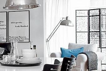 Hoy os muestro un apartamento nórdico algo diferente en cuanto a colores y diseño, que derrocha encanto y elegancia. Esta claro que el color blanco sigue siendo el protagonista, pero en esta ocasión el color turquesa y los elementos naturales también están muy presentes en el diseño. En cuanto a la iluminación, el juego de lamparas en acero y focos son un elemento muy a tener en cuenta. Los grandes espacios abiertos, escasez de mobiliario y los grandes ventanales hacen de esta vivienda un lugar luminoso y amplio en el que relajarse.