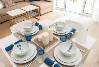 De este apartamento me gusta todo absolutamente, el tamaño, los acabados, el mobiliario (prácticamente 100% Ikea), el uso de colores neutros, blanco y azul, la luz, la distribución… es una vivienda perfecta para una escapada para una pequeña familia o pareja y con algún cambio como vivienda habitual.