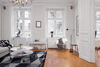 Mas blanco y negro ¡ay! es que no me paro de encontrarme preciosos hogares nórdicos decorados casi en su totalidad en estos dos colores, espero no cansaros con ellos :O En este piso han dejado las notas de color (tonos celestes) para el dormitorio infantil y el principal, en el que llama la atención el difícil ángulo, bien resuelto poniendo la cama en paralelo con el gigantesco armario ropero. Bonitos detalles en todo el piso, como el suelo de madera espigada, las molduras del techo, las baldosas hidráulicas en la cocina o el bonito y cálido papel de pared del hall y el dormitorio principal. Disfrutad! Feliz lunes!