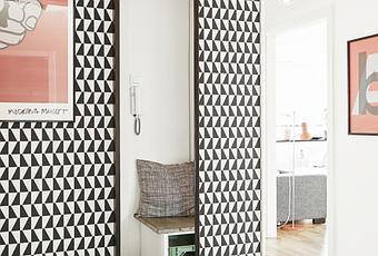 El binomio blanco/negro es uno de los más usados en el estilo nórdico y es el protagonista de este apartamento, no sólo se ha escogido en textiles o piezas decorativas, ya que en los revestimientos también están presentes estos colores, suelo de damero, el precioso revestimiento de mosaico de la entrada e incluso las juntas de los azulejos tipo "metro" de la cocina se han escogido en negras, sólo podemos encontrar pequeños toques de madera y algún que otro tono marrón, tostado o gris. En cuanto al estilo, el nórdico rompe con toques de estilo industrial como lámparas metálicas o elementos reciclados tan propios de este estilo, en definitiva, una mezcla perfecta con un resultado más que bonito y que, al menos a mí, me transmite serenidad.