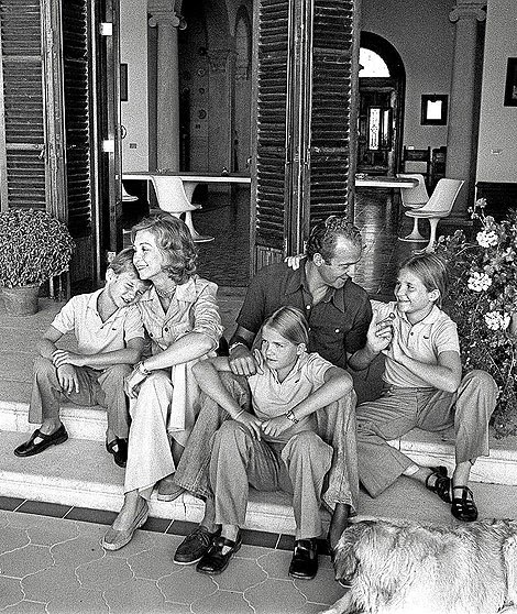 En esos primeros veranos, la Familia Real se permite una normalidad que desaparecerá con el tiempo, cuando el cargo, la seguridad y la atención mediática le pongan freno. Los fotógrafos, todos locales, que retratan esos inicios, se cuentan con los dedos de una mano. “Nada de arcos de seguridad –continúa Torío–, ni perros que olfateen explosivos. La estancia en Marivent es humilde. Apenas un sofá en el que nadie se sienta, unos muebles heredados y fuera, el porche, donde no hay más lujos que unas baratas sillas de mimbre. Ninguno está tentado de robar instantáneas. Saben que no estaría bien disparar la cámara sin que les hayan autorizado. Prima el respeto y la ingenuidad de un negocio donde las revistas del corazón todavía no han desembarcado. No ha hecho falta adoptar el término paparazzo. El Príncipe y las Infantas corretean tras el perro, don Juan Carlos juega con ellos, doña Sofía sonríe y, después de la sesión, los reporteros gráficos, vestidos con traje y corbata y la cámara al cuello, posan con quienes acaban de retratar. Una vez han surtido a sus medios, corren a enviar por avión los carretes para las agencias nacionales, que no tendrán corresponsales hasta el verano de 1976, cuando los Reyes sean coronados. En Madrid interesa ver a la Reina en ropa de verano, al Príncipe en pantalón corto y al Rey en polo y vaqueros acampanados, aunque todavía no sean más que una promesa democrática de sangre azul, el futuro difuminado en los galones de un dictador en el ocaso. Los Borbones se cuelan en los periódicos y las revistas poco a poco, al ritmo, aquel verano de 1973, de la patriótica Que viva España de Manolo Escobar, con la crisis del petróleo paralizando la economía mundial”.