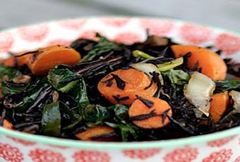 3. Cubrir la sartén y cocinar durante 30-35 minutos, o hasta que las zanahorias estén lo bastante tiernas (puede agregarse un poco de agua de adicional si durante la cocción pueda parecer que resulte algo seco). Añadir ahora la col rizada y cocinar durante otros 5 minutos.